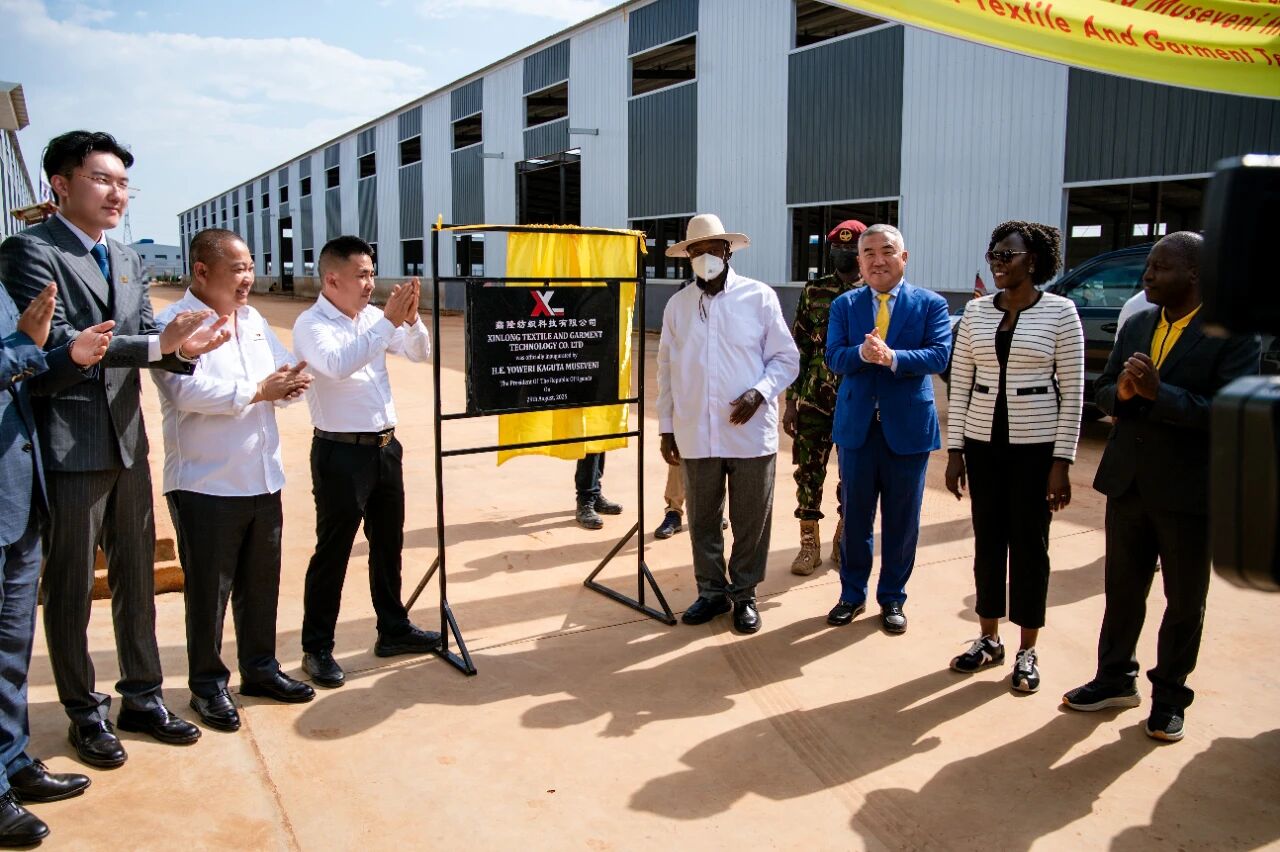 乌干达当地时间2025年8月29日,乌干达总统穆塞韦尼阁下莅临中乌姆巴莱工业园,为园区联合钢铁乌干达投资有限公司、鑫隆纺织服装科技有限公司、美好纺织乌干达有限公司、林木纸业乌干达有限公司四家企业揭牌并为长江实业等九家企业集中奠基。